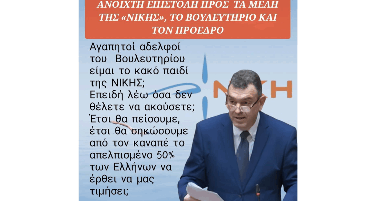 Ενας μικρός χαμός γίνεται από το πρωί στο κόμμα της ΝΙΚΗΣ με τον βουλευτή Β΄ Θεσσαλονίκης, Νίκο Παπαδόπουλο. Ο τελευταίος με απόφαση του προέδρου, Δημήτρη Νατσιού, βαίνει προς διαγραφή. Με το που έγινε γνωστή η απόφαση, ο κ. Παπαδόπουλος βγήκε στην αντεπίθεση, απαντώντας ως εξής: «Μέλη της ΝΙΚΗΣ αγαπητά, Χριστός Ανέστη!!! Ποτέ δεν φαντάστηκα ότι […]