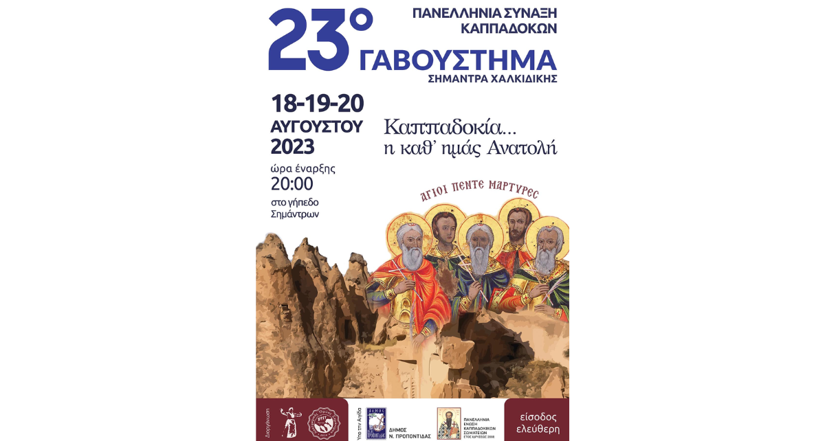 Στρέφοντας το κεφάλι προς την Ανατολή, βλέπεις τις ρίζες μας, ενστερνίζεσαι βιώματα και μνήμες, αφουγκράζεσαι μουσικές, κατακλύζεσαι από γεύσεις και αρώματα, κοινωνείς με Αγίους, Οσίους και Μάρτυρες…γιατί τη μνήμη αυτή, μπόλιασαν μέσα μας οι πρόγονοι μας, κι σκέψη μας έμεινε εκεί…στην Αγιοτόκο μητέρα μας Καππαδοκία. Το 23ο Γαβούστημα όλο και πλησιάζει, για να σμίξουμε κρατώντας […]