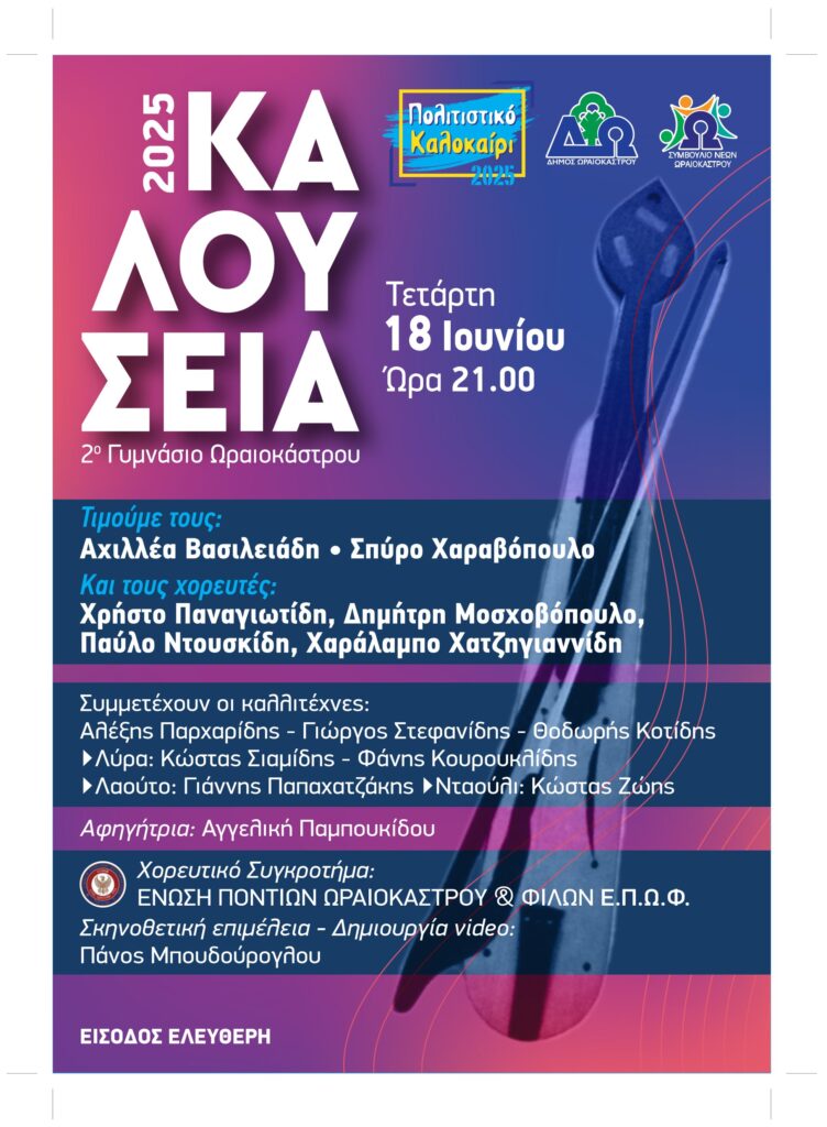 Η εκδήλωση θα πραγματοποιηθεί την Τετάρτη, 18 Ιουνίου 2025, στις 21.00, στο 2ο Γυμνάσιο Ωραιοκάστρου (Οδ. Ελύτη 19) με ελεύθερη είσοδο για το κοινό.