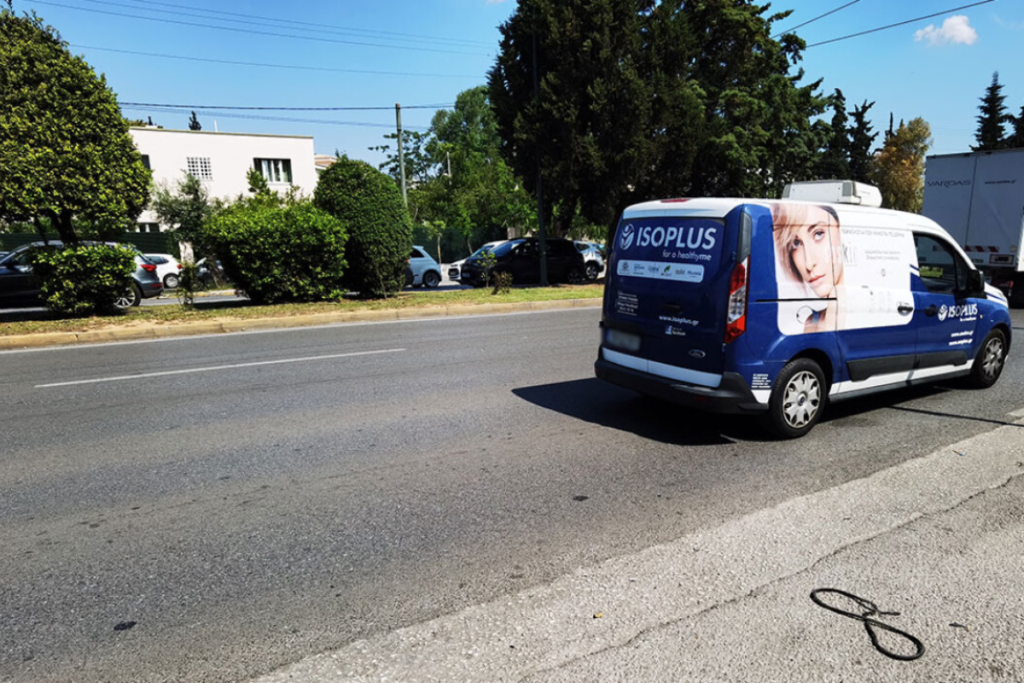 Ο 35χρονος οδηγός courier φαίνεται να κινείται με χαμηλή ταχύτητα στη μεσαία λωρίδα κυκλοφορίας όταν η γυναίκα από τη Γεωργία με το 3χρονο παιδί διασχίζουν κάθετα τη λεωφόρο Κηφισίας από σημείο χωρίς διάβαση και σηματοδότηση.
