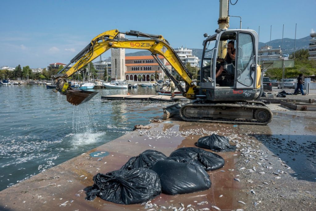 To Γαλλικό Πρακτορείο, που δημοσιεύει σοκαριστικές φωτογραφίες από το λιμάνι του Βόλου μιλά για «αγώνα δρόμου» των Αρχών για να επιλύσουν το πρόβλημα.